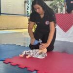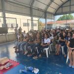 A atividade teve como foco o ensino de técnicas de suporte básico de vida e manobras de desengasgo para situações de emergência, tanto em adultos quanto em crianças. A ação foi direcionada aos alunos do terceiro ano do ensino médio da unidade escolar, com orientações práticas e linguagem acessível, buscando conscientizar e capacitar os jovens sobre como agir diante de emergências do dia a dia.